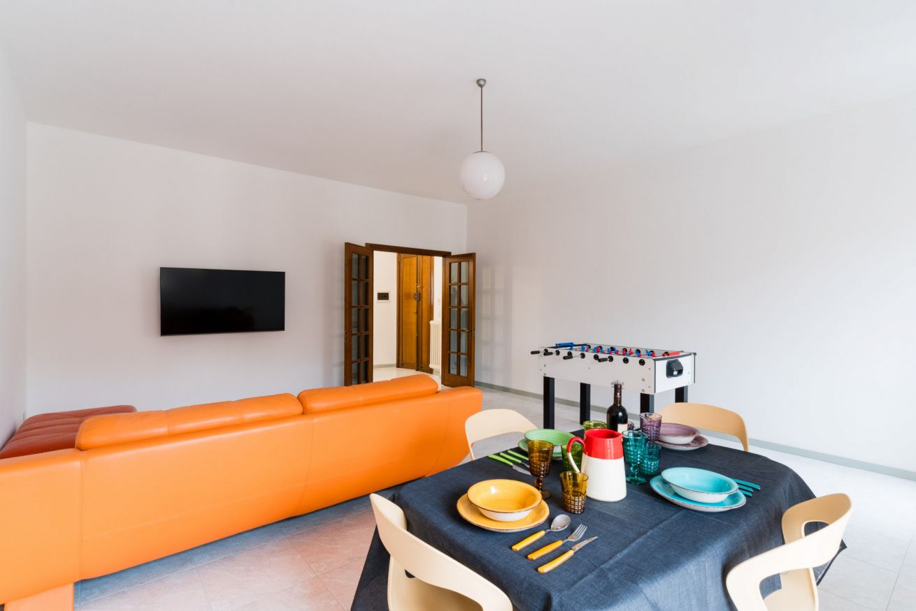 🛋️ Soggiorno accogliente, con divano, TV e tavolo da pranzo, perfetto per momenti di relax e convivialità
