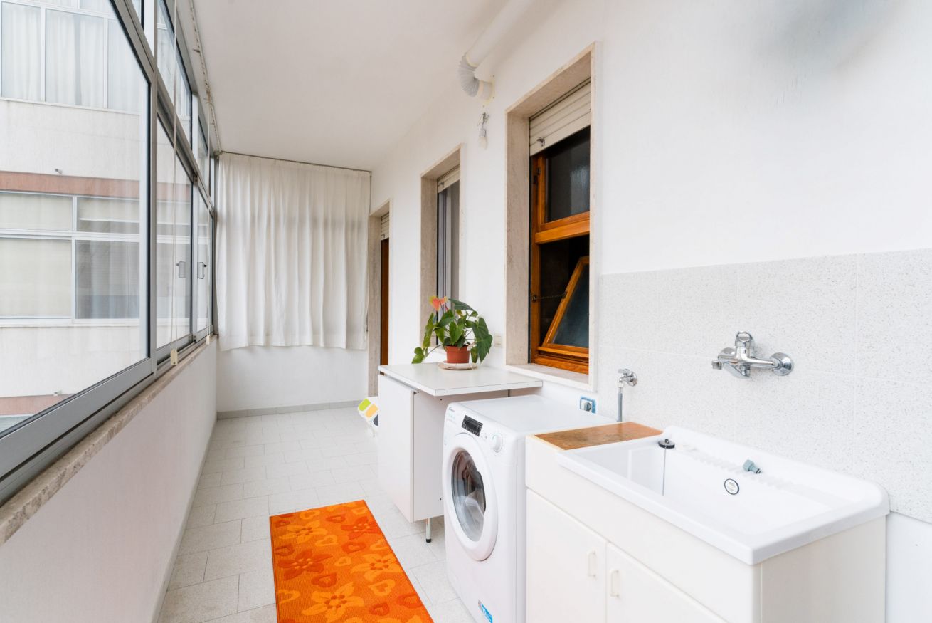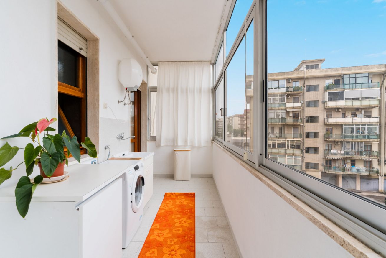 La casa è dotata di un comodo balcone con vista sulla città e di una verandina con zona lavanderia e lavatrice.