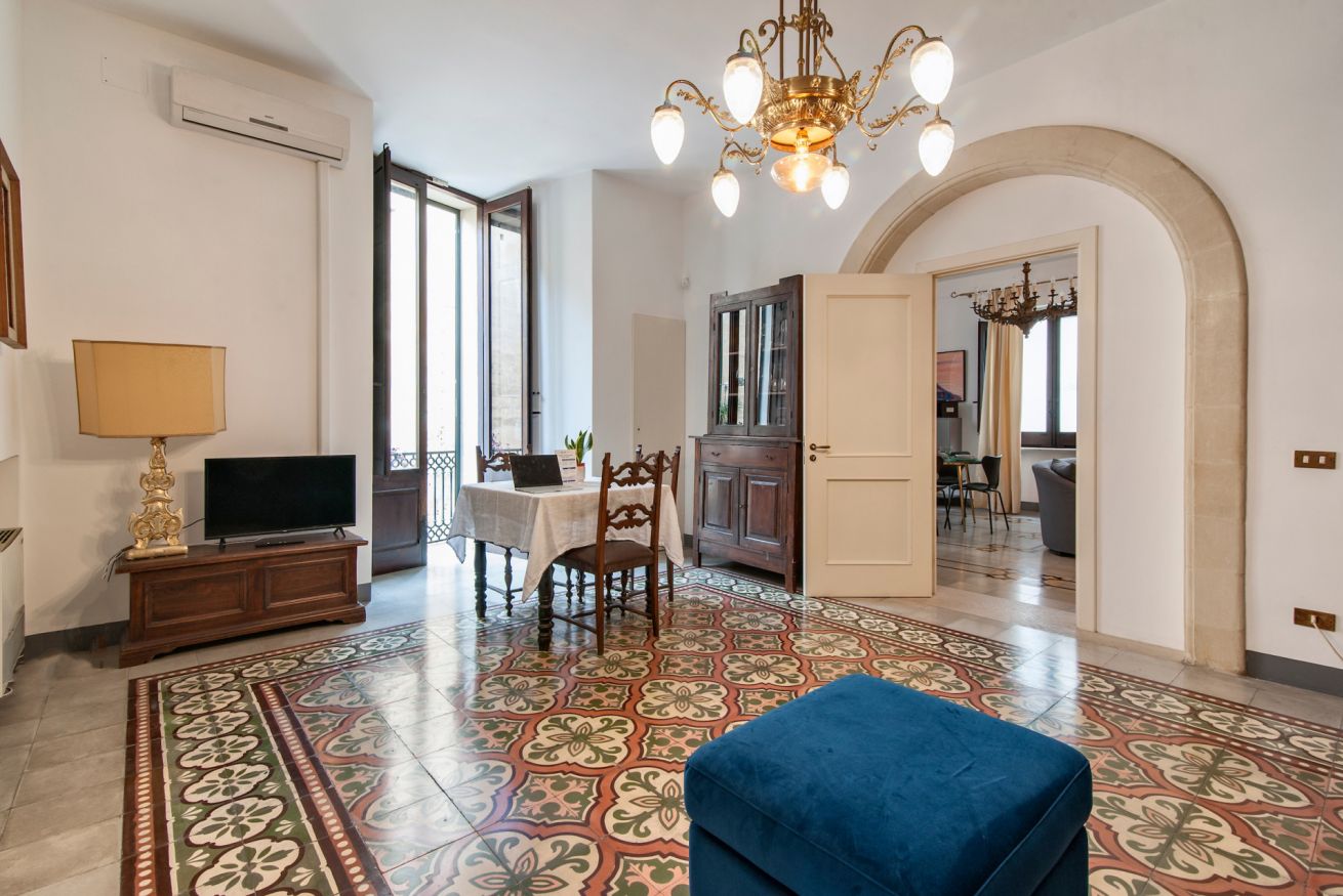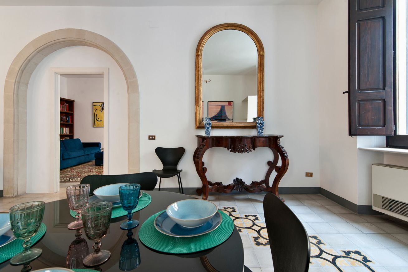 Vivi l'atmosfera autentica del centro storico di Lecce in questo ampio e raffinato appartamento, situato al primo piano di un elegante palazzo storico.