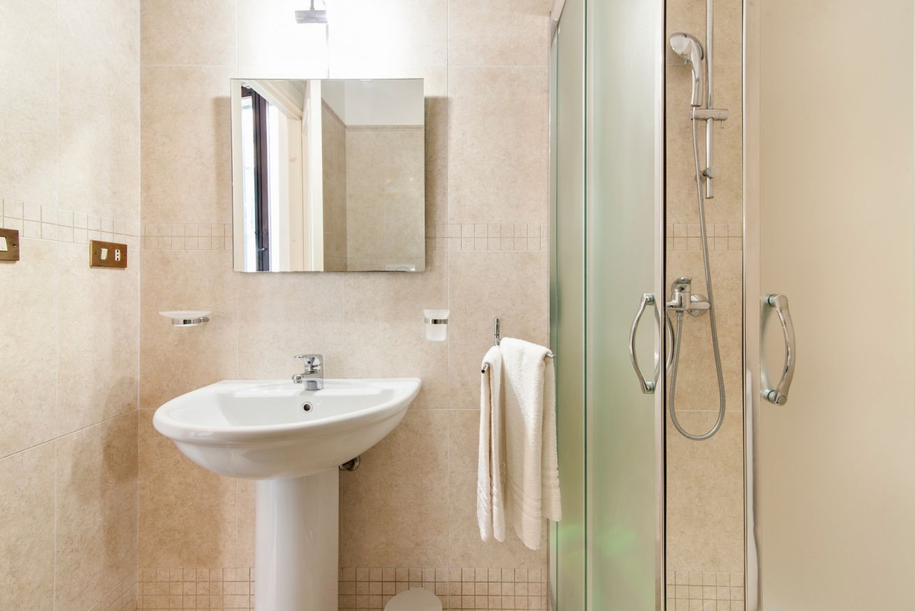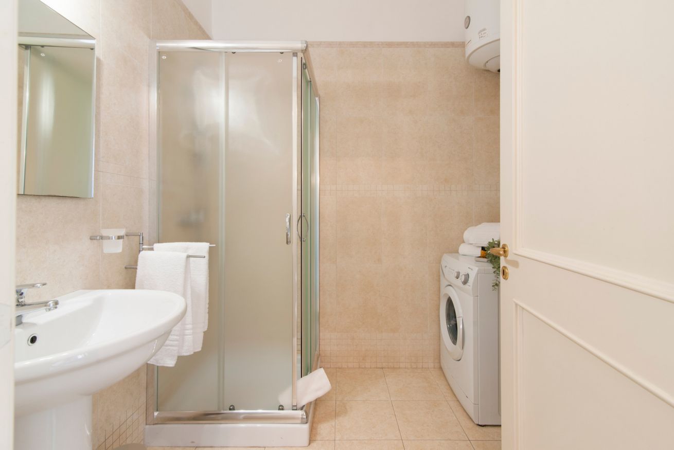 🚿 Un bagno privato moderno e funzionale, dotato di tutto il necessario per garantire il massimo del comfort, inclusa una lavatrice a disposizione degli ospiti.