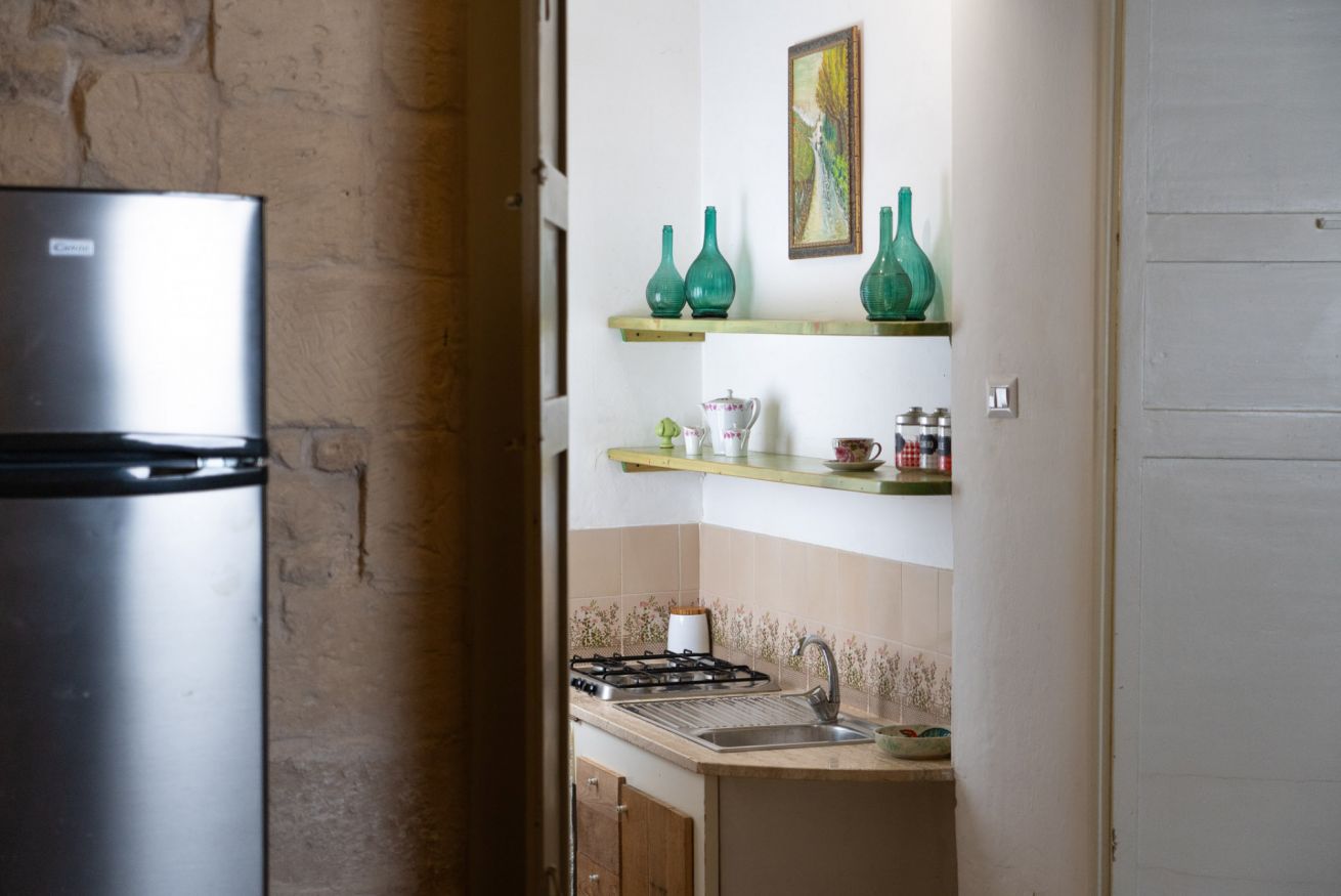 Il cucinino, ricavato all’interno dell’antica muratura, è completo di: