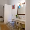 Il bagno conserva l’atmosfera autentica della struttura grazie a:
