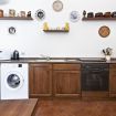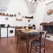 • cucina accessoriata con piano cottura a gas, tavolo da pranzo,frigo,forno,lavatrice