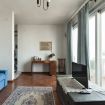 Saleone con divanoletto a 2 posti e scrivania,armadio e ampia vetrata su balcone
